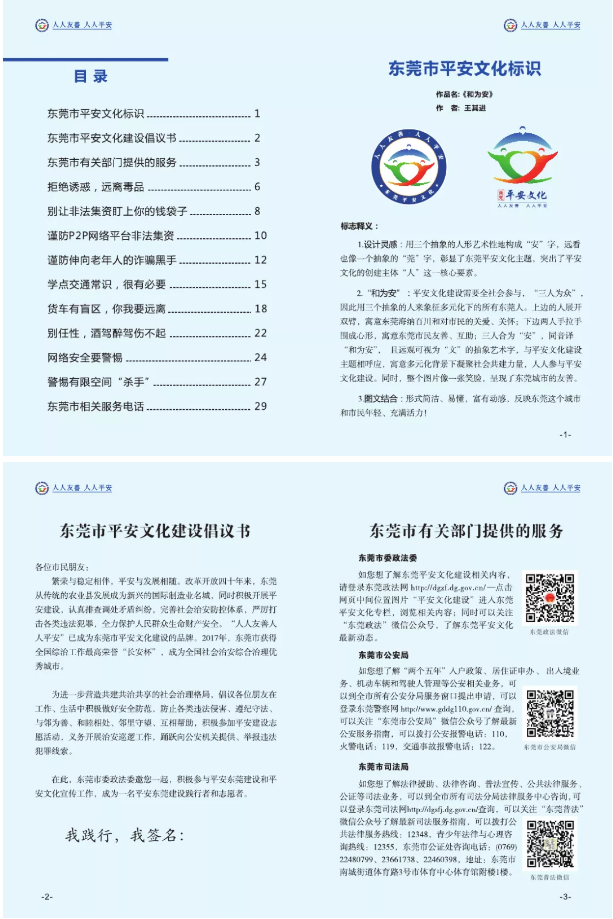 东莞平安文化建设宣传手册:人人平安,人人友善